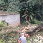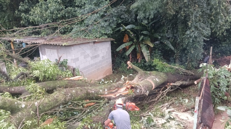 Após temporal, árvore cai e atinge duas casas no bairro Trocadeiro em Mairinque
