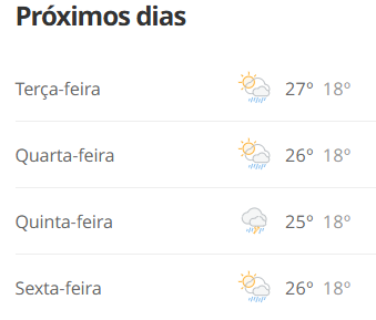 A região de Mairinque, São Roque e Alumínio, deve enfrentar uma semana de calor e aumento das pancadas de chuva, principalmente entre o fim da tarde e à noite, de acordo com o INMET. A previsão vale até sexta-feira (16). Confira:
